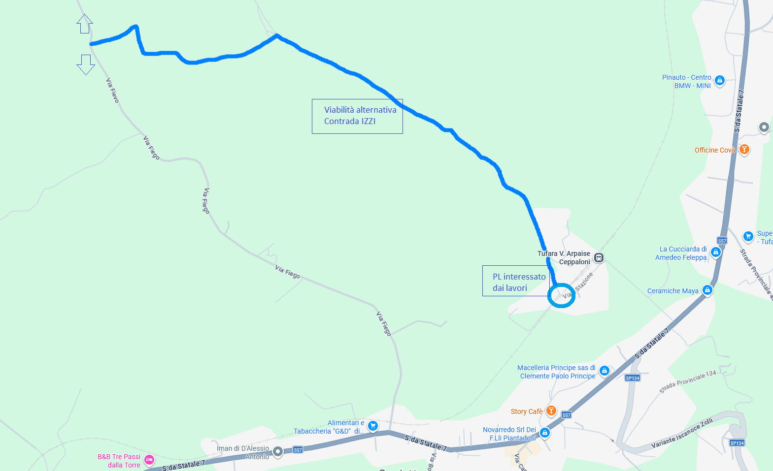 Preso atto che per consentire il regolare svolgimento dei lavori suindicati è necessario provvedere alla chiusura temporanea al traffico di Via Contrada Izzi 41°03'37.3"N 14°42'15.6"E, Passaggio a livello (al km ferroviario 34+850), fino all’incrocio con Via Fiego, come da grafico allegato;